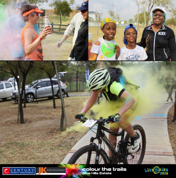 Much fun and excitement was had by the participants in the inaugural Blue Hills Estate colour run and ride last Saturday 8 September. Organised by Like2Bike, this new concept was a big hit with runners and riders encountering colour explosions on the various routes. Congratulations to all finishers and we hope to see you all at the next event! Thank you to our sponsor JK Designs.