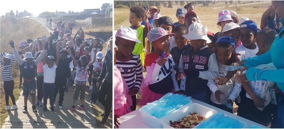 The children arrived at school hardly able to contain their excitement, and so did the parents. It was wonderful to see all the parents supporting the school and their children. Our walk started at 9:00 and we were privileged to have Mrs Burger at school to welcome our children and parents and to start off the race.